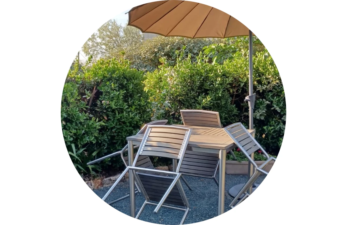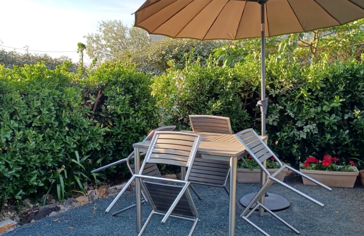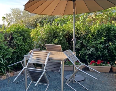 | Espaces extérieurs | Parking privé à l’intérieur de la propriété (éventuellement partagée si N1 occupée par propriétaire) Grand jardin arboré et paysagé (2 000m²) + usage privatif d’un salon de jardin (4 chaises + table & parasol) et de 2 chaises longues |